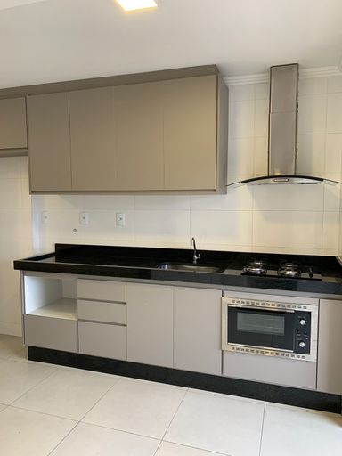 O apartamento já possui forno, cooktop e coifa, além de móveis planejados na cozinha, lavanderia, varanda gourmet, lavabo e banheiros.